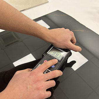 L’unità di misura di Gloss (Gloss Units o GU) va da 0 a 100 e definisce se la superficie finale di un materiale sia opaca oppure lucida. Questa misurazione è utile al fine di valutare la lucentezza della piastrella finita o in corso d’opera. In questo modo si può sempre sapere il risultato che si vorrebbe o non vorrebbe (da correggere) ottenere con un dato processo produttivo.