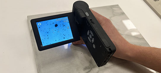 Microscopio portatile con display LCD integrato a colori di 3 pollici. Questo modello fornisce un ingrandimento fino a 400x ed è dotato di un fluido zoom digitale fino a 4x. Ideale per analizzare la superficie delle piastrelle e la loro porosità. Questa analisi è utile per valutare il processo mediante il quale è stata prodotta e trattata la piastrella.
